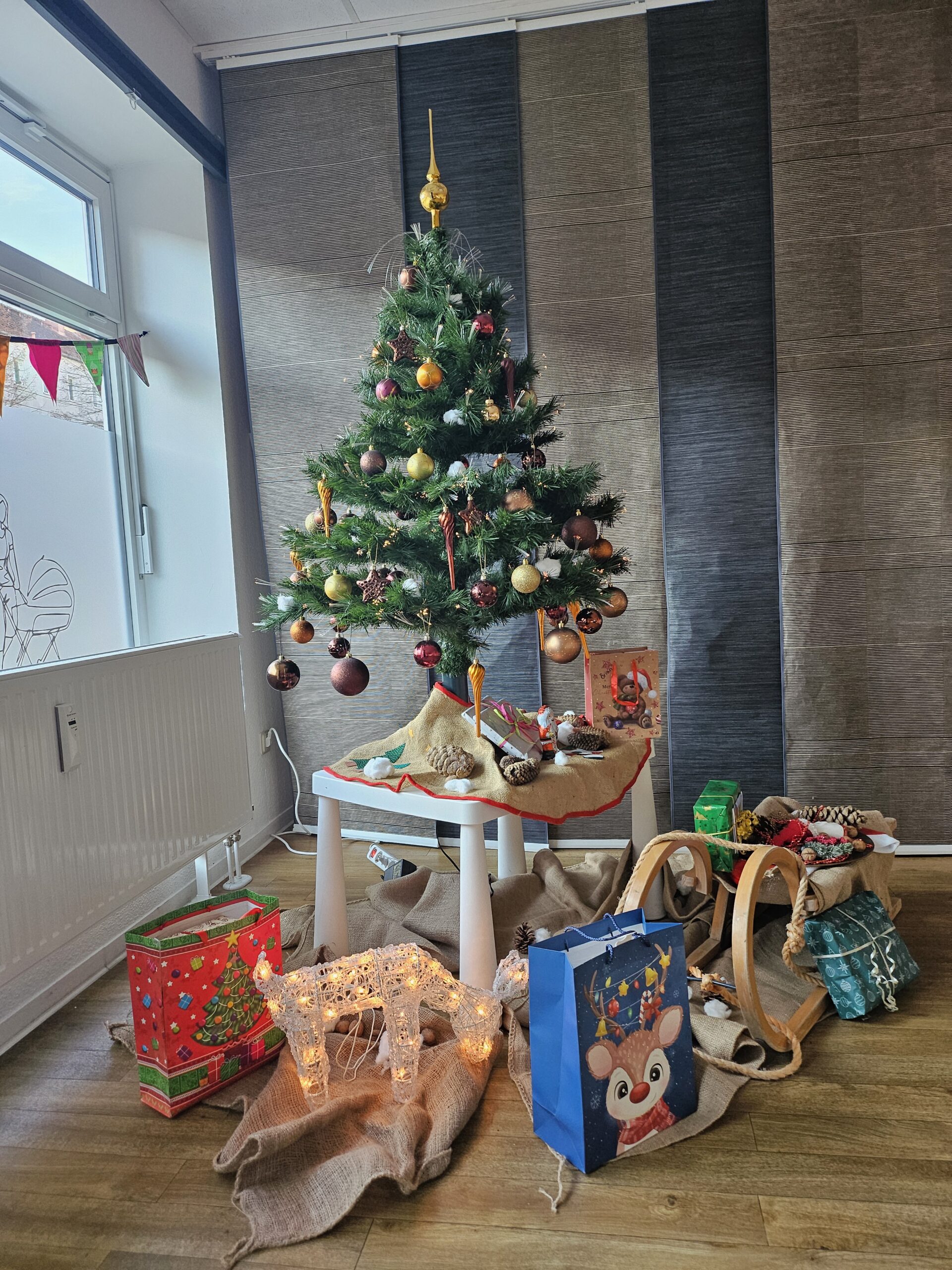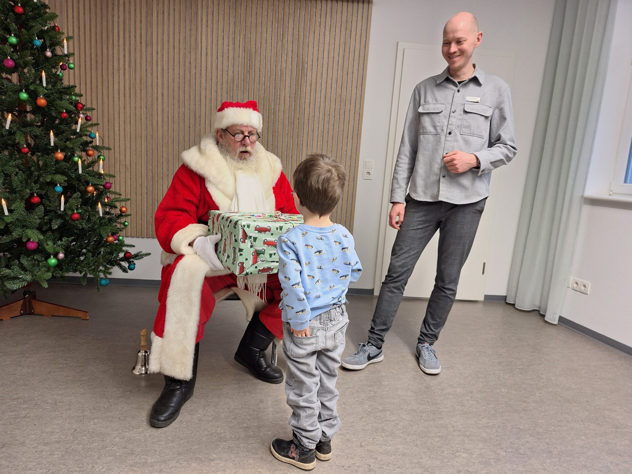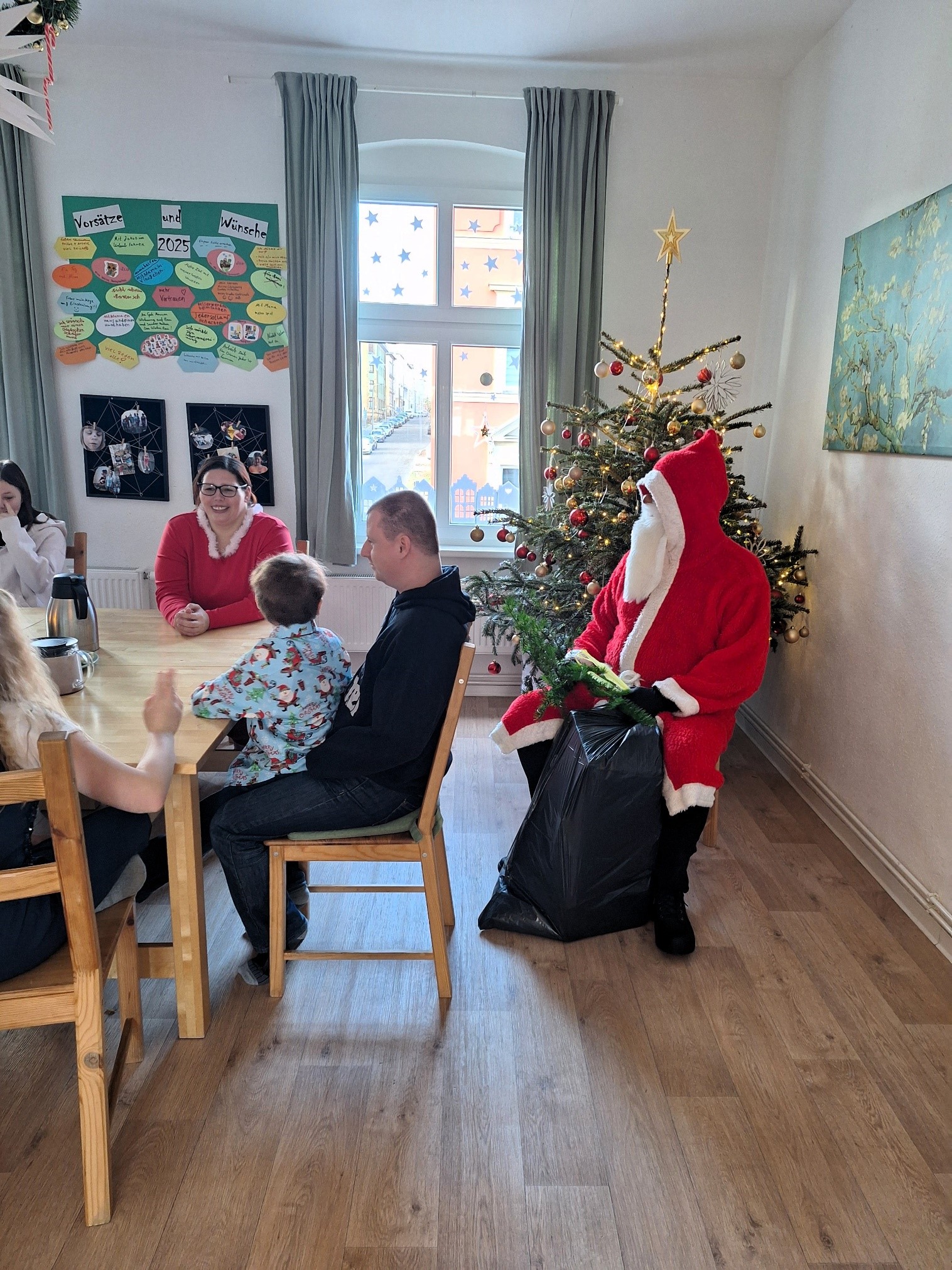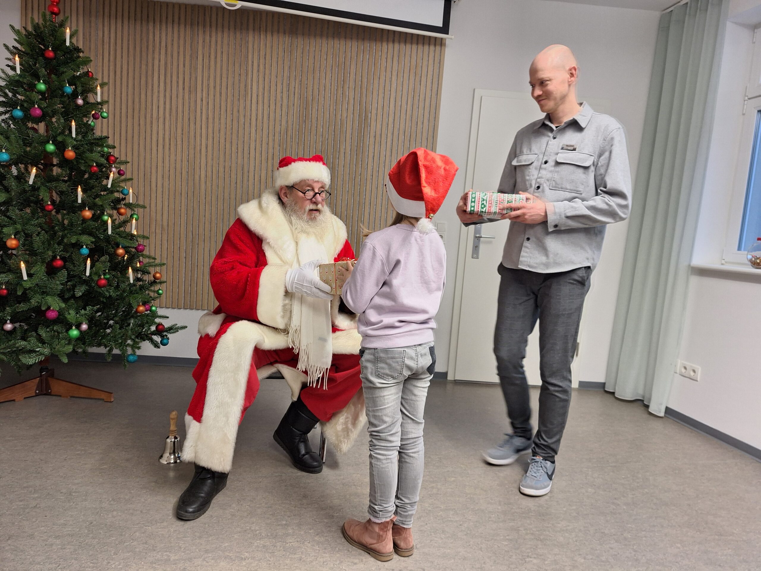 Ho, ho, ho – der Weihnachtsmann kam, und die Feier war ein voller Erfolg! Die Kinder aus den Wohngruppen „Ankerplatz“, „Wellenreiter“ und „Seesterne“ hatten zuvor mit viel Kreativität Weihnachtsbaumanhänger gestaltet, die ihre Wünsche zeigten.