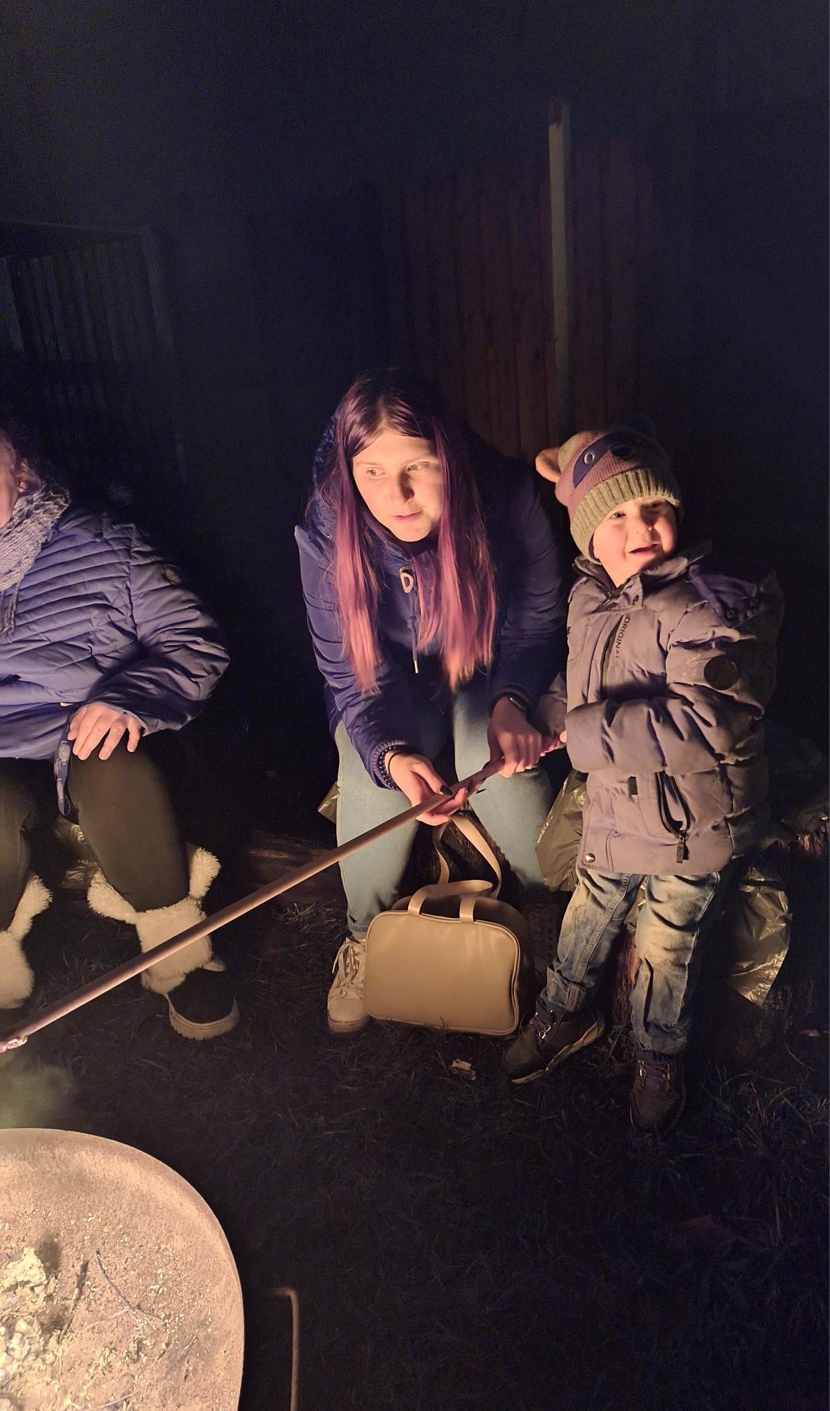 Die Kinder waren aufgeregt, und ihre Augen leuchteten genauso wie die Lichter, die den Hof schmückten. In der Mitte des Geschehens stand ein prasselndes Feuer, das die kühle Luft erhellte und eine wohlige Wärme verbreitete. Es war der perfekte Ort, um zusammenzukommen, zu plaudern und die festliche Stimmung zu genießen.