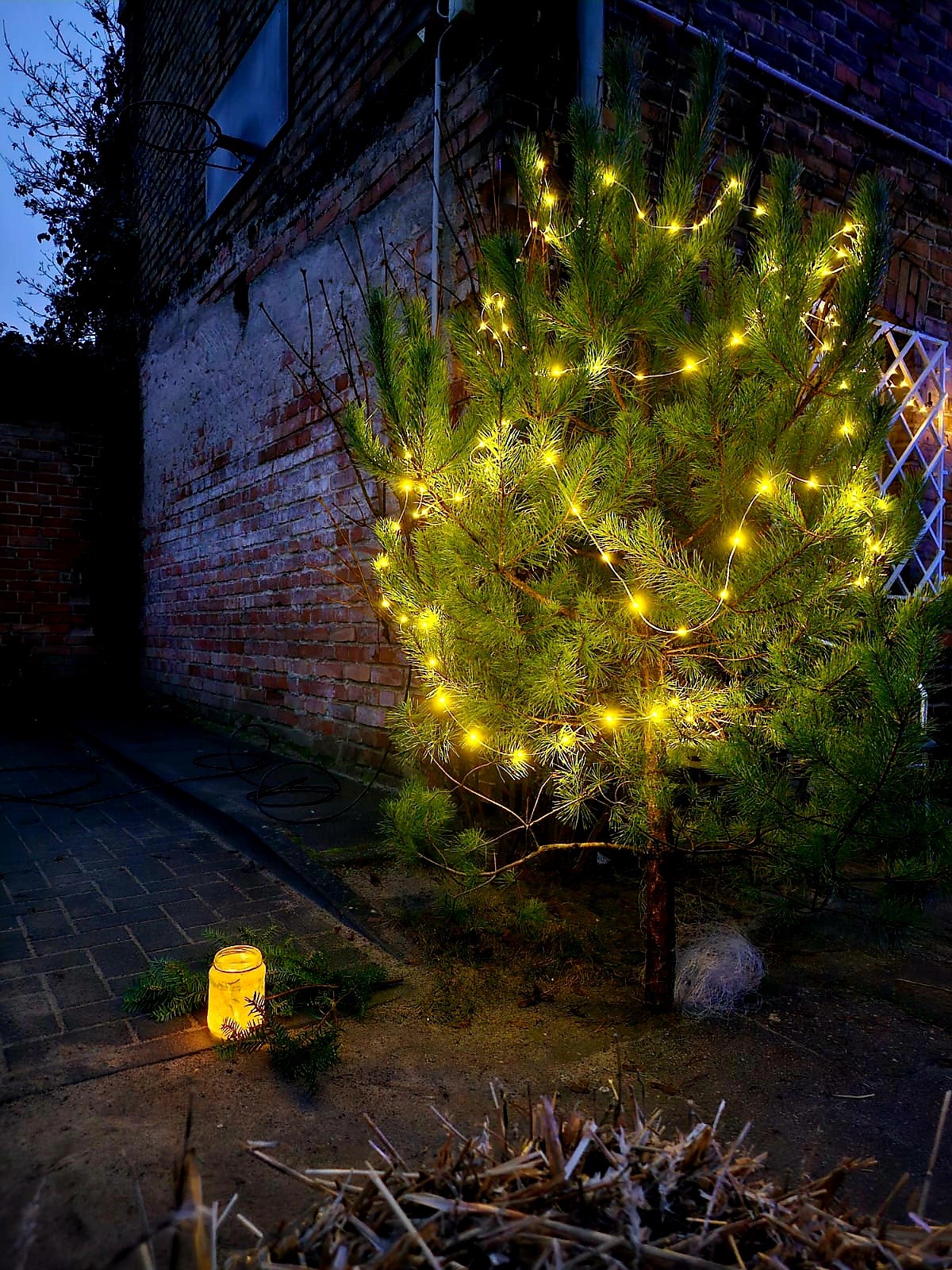 Das warme Laternenlicht spiegelte sich in den Fenstern und schuf eine zauberhafte Atmosphäre.